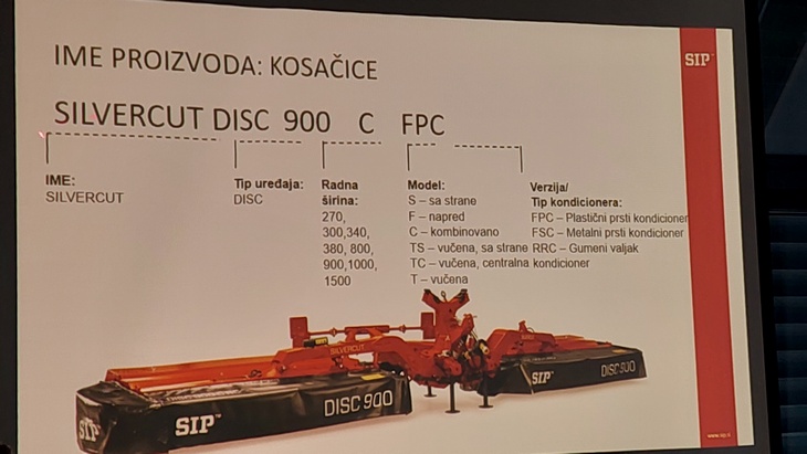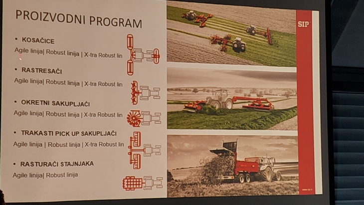 Ona je podsetipa da SIP proizvodi najveću vučenu kosu na svetu čija dužina je 15 metara. To znači i da je okretač koji ide uz nju širine 15 metra, a sakupljač 12 metara. Sve mašine opremljene su kardanom.