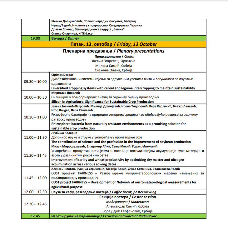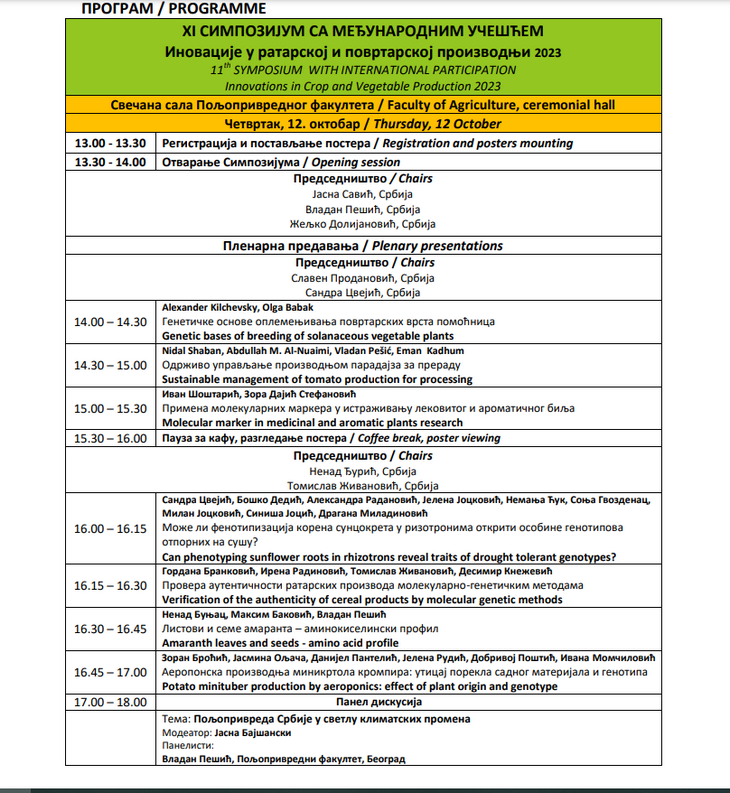 On naglašava da se značaj simpozijuma ogleda u razmeni naučnih saznanja o trendovima u biljnoj poljoprivrednoj proizvodnji, međusobnom povezivanju istraživača na nacionalnom, regionalnom i globalnom nivou, razmeni iskustava i dogovora o budućim zajedničkim projektima.